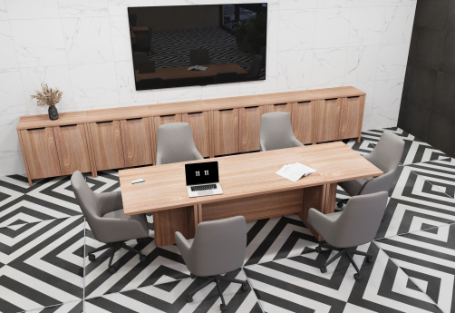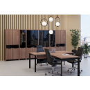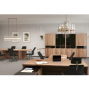 Амстердам - мебель в кабинет руководителя, выполненная в современном дизайне. Особенность серии: декор из полированного стекла лакобель, толстые столешницы, сборные столы для заседаний и конференций, актуальные цвета ЛДСП.