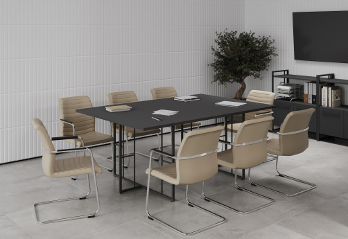 Минималистичный стиль лофт, дизайнерские опоры у столов руководителей, журнальных столов, столов для переговоров, металлические каркасы у стеллажей, наборные шкафы - все это современная серия Миллениум Директ.