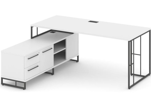 Стол руководителя на опорной тумбе левый Миллениум Директ, цвет белый бриллиант + черный