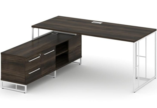 Минималистичный стиль лофт, дизайнерские опоры у столов руководителей, журнальных столов, столов для переговоров, металлические каркасы у стеллажей, наборные шкафы - все это современная серия Миллениум Директ.