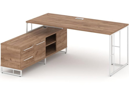 Стол руководителя на опорной тумбе левый Миллениум Директ, цвет дуб винченсо + белый