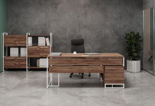 Минималистичный стиль лофт, дизайнерские опоры у столов руководителей, журнальных столов, столов для переговоров, металлические каркасы у стеллажей, наборные шкафы - все это современная серия Миллениум Директ.