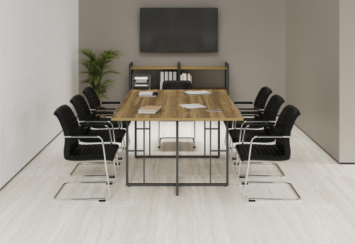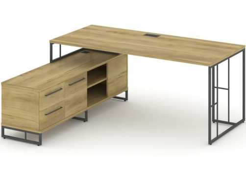 Минималистичный стиль лофт, дизайнерские опоры у столов руководителей, журнальных столов, столов для переговоров, металлические каркасы у стеллажей, наборные шкафы - все это современная серия Миллениум Директ.