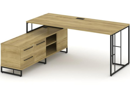 Минималистичный стиль лофт, дизайнерские опоры у столов руководителей, журнальных столов, столов для переговоров, металлические каркасы у стеллажей, наборные шкафы - все это современная серия Миллениум Директ.