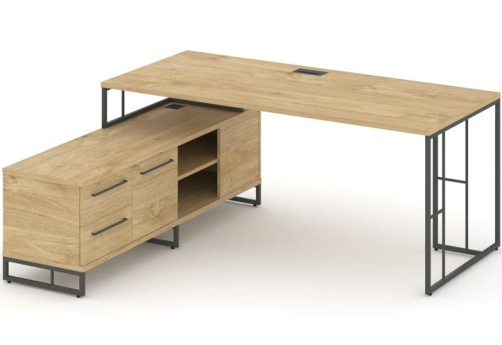 Минималистичный стиль лофт, дизайнерские опоры у столов руководителей, журнальных столов, столов для переговоров, металлические каркасы у стеллажей, наборные шкафы - все это современная серия Миллениум Директ.