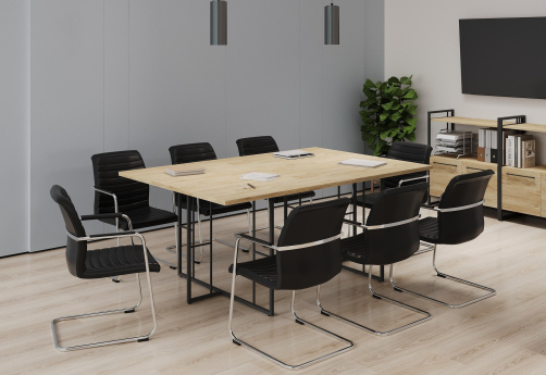 Минималистичный стиль лофт, дизайнерские опоры у столов руководителей, журнальных столов, столов для переговоров, металлические каркасы у стеллажей, наборные шкафы - все это современная серия Миллениум Директ.