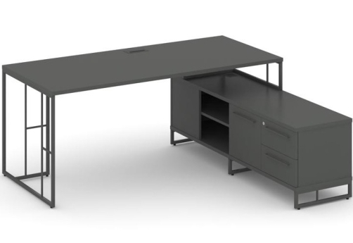 Минималистичный стиль лофт, дизайнерские опоры у столов руководителей, журнальных столов, столов для переговоров, металлические каркасы у стеллажей, наборные шкафы - все это современная серия Миллениум Директ.