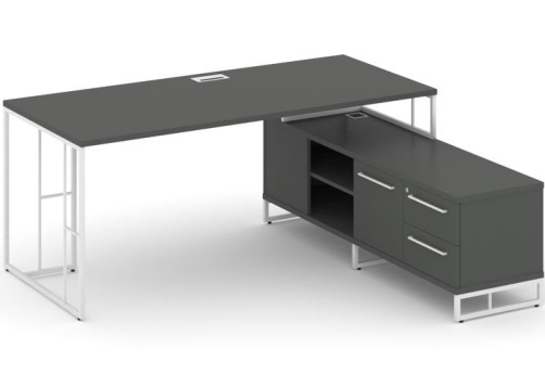 Стол руководителя на опорной тумбе левый Миллениум Директ, цвет антрацит + белый