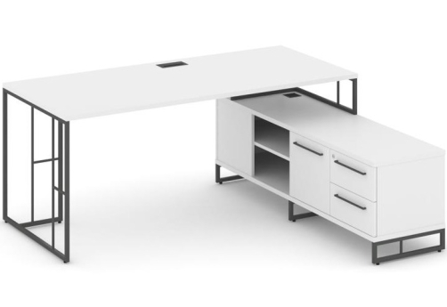 Стол руководителя на опорной тумбе левый Миллениум Директ, цвет белый бриллиант + черный