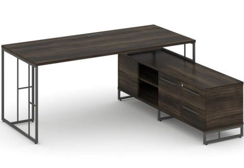 Минималистичный стиль лофт, дизайнерские опоры у столов руководителей, журнальных столов, столов для переговоров, металлические каркасы у стеллажей, наборные шкафы - все это современная серия Миллениум Директ.
