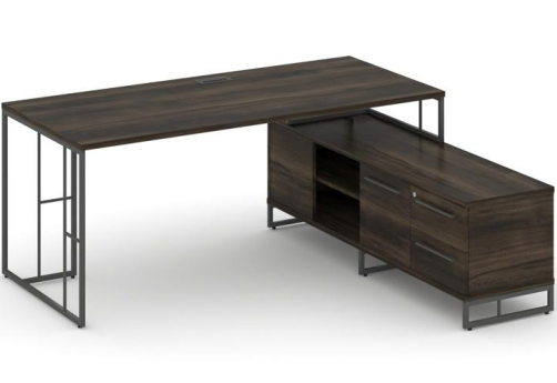 Минималистичный стиль лофт, дизайнерские опоры у столов руководителей, журнальных столов, столов для переговоров, металлические каркасы у стеллажей, наборные шкафы - все это современная серия Миллениум Директ.