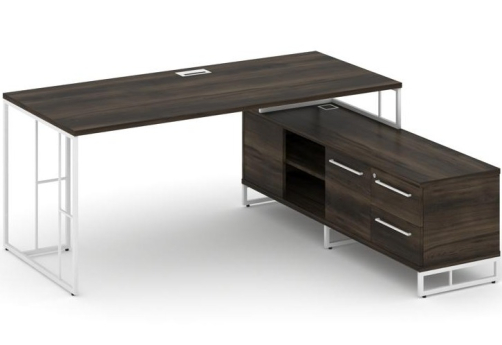 Минималистичный стиль лофт, дизайнерские опоры у столов руководителей, журнальных столов, столов для переговоров, металлические каркасы у стеллажей, наборные шкафы - все это современная серия Миллениум Директ.