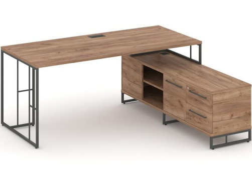 Стол руководителя на опорной тумбе левый Миллениум Директ, цвет дуб винченсо + черный