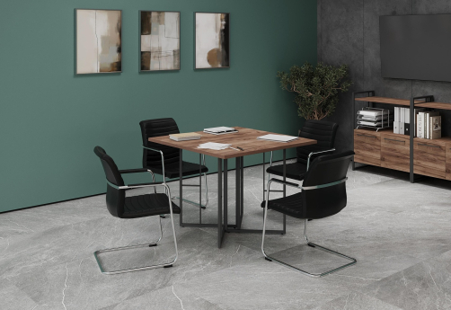 Минималистичный стиль лофт, дизайнерские опоры у столов руководителей, журнальных столов, столов для переговоров, металлические каркасы у стеллажей, наборные шкафы - все это современная серия Миллениум Директ.