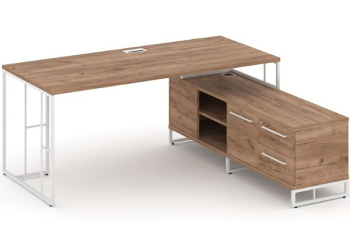 Минималистичный стиль лофт, дизайнерские опоры у столов руководителей, журнальных столов, столов для переговоров, металлические каркасы у стеллажей, наборные шкафы - все это современная серия Миллениум Директ.