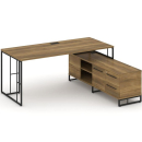 Стол руководителя на опорной тумбе левый Миллениум Директ, цвет тиквуд светлый + черный