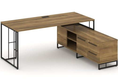 Минималистичный стиль лофт, дизайнерские опоры у столов руководителей, журнальных столов, столов для переговоров, металлические каркасы у стеллажей, наборные шкафы - все это современная серия Миллениум Директ.