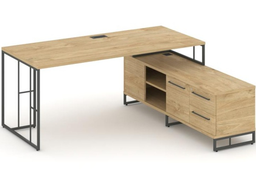 Минималистичный стиль лофт, дизайнерские опоры у столов руководителей, журнальных столов, столов для переговоров, металлические каркасы у стеллажей, наборные шкафы - все это современная серия Миллениум Директ.