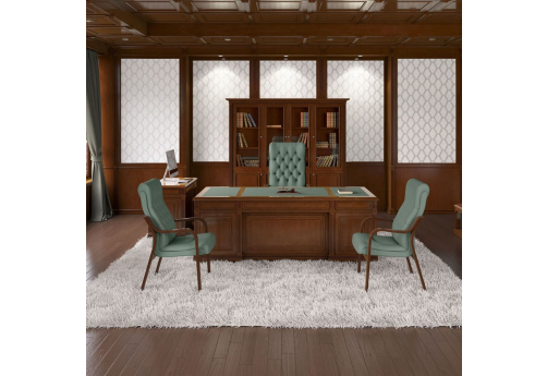 Кабинет выполнен в благородном классическом стиле, при этом в соответствии с современными дизайнерскими тенденциями. Это прекрасный пример мебели премиум-класса, предназначенной для статусных дорогих интерьеров. Мебель в кабинете смотрится фундаментально и строго, но вместе с тем очень элегантно.