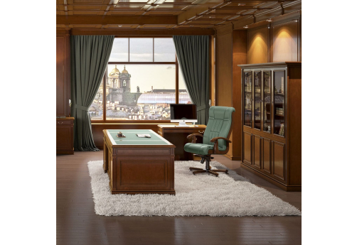 Кабинет выполнен в благородном классическом стиле, при этом в соответствии с современными дизайнерскими тенденциями. Это прекрасный пример мебели премиум-класса, предназначенной для статусных дорогих интерьеров. Мебель в кабинете смотрится фундаментально и строго, но вместе с тем очень элегантно.