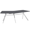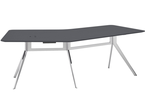 Премиальная мебель для руководителя. Изготовлен из шпона натурального дуба с матовым покрытием, с антрацитовым отливом и нулевым глянцем. Оригинальные металлические хромированные опоры. Шкаф с консольными полками с подсветкой и ящиками.