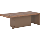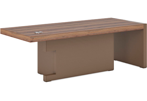 Мебель для кабинета руководителя премиум-класса - монолитные столешницы, геометрия линий, цвета материалов под натуральное дерево, отделка качественной экокожей, шкаф-тотем со светодиодной подсветкой, встроенные кабель-каналы, механизм push-to-open.