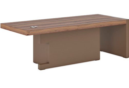 Мебель для кабинета руководителя премиум-класса - монолитные столешницы, геометрия линий, цвета материалов под натуральное дерево, отделка качественной экокожей, шкаф-тотем со светодиодной подсветкой, встроенные кабель-каналы, механизм push-to-open.