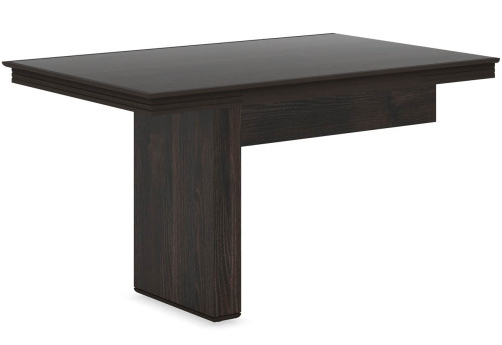 Мебель Харди - это столы руководителя с массивными столешницами, оснащенные бюварами, выполненные в древесном темном оттенке из ЛДСП в сочетании с массивом бука. Элементы из массива: карнизы шкафов, ручки фасадов, кромки столов, накладки на опоры.