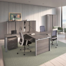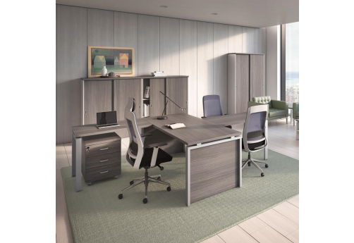 Современный кабинет руководителя - столы и брифинги на оригинальных опорах с вставками. Столешницы с проставками придают индивидуальность этой мебели. В линейке: тумбы, шкаф, шкафы-купе – все, что нужно для комфортной работы в офисе.