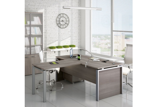 Современный кабинет руководителя - столы и брифинги на оригинальных опорах с вставками. Столешницы с проставками придают индивидуальность этой мебели. В линейке: тумбы, шкаф, шкафы-купе – все, что нужно для комфортной работы в офисе.