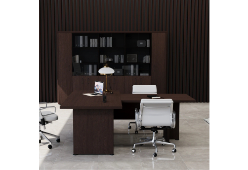 Стол руководителя с брифинг-приставкой и боковой приставкой Сиенна, цвет темный дуб