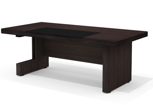 Стол руководителя с кожаным бюваром, подвесной тумбой и брифинг-приставкой правый, цвет вишня
