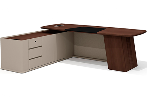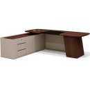 Стол руководителя с опорной тумбой левый Наполи, цвет дуб дюваль + серый кварц + мокко