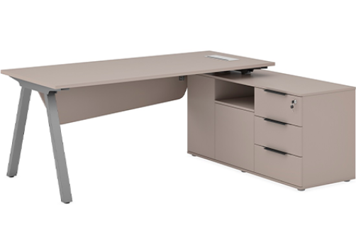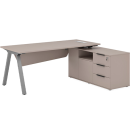 Стол руководителя с опорной тумбой левый Верро, цвет серый камень