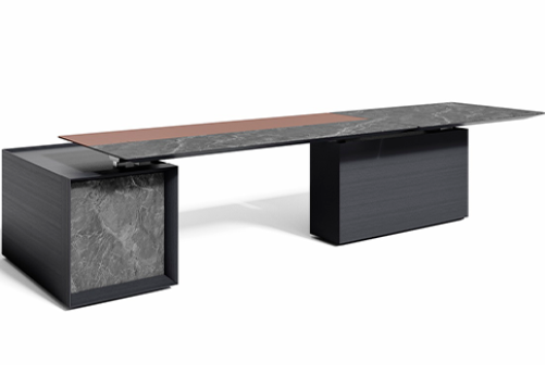 столешница: с покрытием каменный шпон + фиксированная кожаная накладка