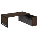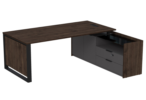 Стол с лючком на опорной угловой тумбе с ящиками (метабокс) и замком Венди, цвет брауни + графит