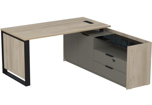 Стол с лючком на опорной угловой тумбе с ящиками (метабокс) и замком Венди, цвет светлый дуб + терра