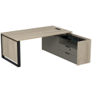 Стол на опорной угловой тумбе с ящиками (метабокс) и замком Венди, цвет светлый дуб + терра