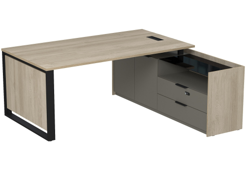 Стол с лючком на опорной угловой тумбе с ящиками (метабокс) и кодовым замком Венди, цвет светлый дуб + терра