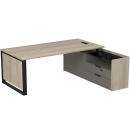 Мебель для руководителя Венди – дизайнерские столы с опорными тумбами на металлических О-образных опорах с накладками из ЛДСП-панелей. В линейке также переговорные столы, брифинг-приставки, тумбы (составные, подкатные, распашные), шкафы (модульные, комбинированные).