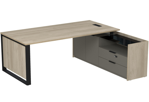 Стол с лючком на опорной угловой тумбе с ящиками (метабокс) и кодовым замком Венди, цвет светлый дуб + терра