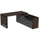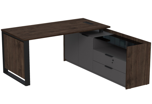 Стол с лючком на опорной угловой тумбе с ящиками (метабокс) и замком Венди, цвет брауни + графит