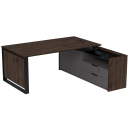 Стол с лючком на опорной угловой тумбе с ящиками (метабокс) и замком Венди, цвет брауни + графит