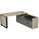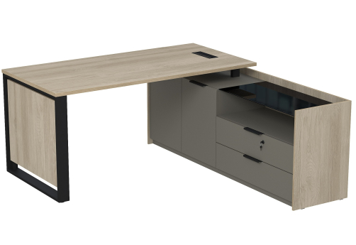Стол с лючком на опорной угловой тумбе с ящиками (метабокс) и замком Венди, цвет светлый дуб + терра