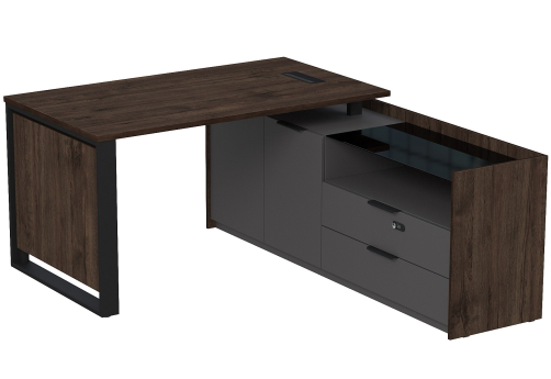 Стол с лючком на опорной угловой тумбе с ящиками (метабокс) и замком Венди, цвет брауни + графит