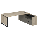 Мебель для руководителя Венди – дизайнерские столы с опорными тумбами на металлических О-образных опорах с накладками из ЛДСП-панелей. В линейке также переговорные столы, брифинг-приставки, тумбы (составные, подкатные, распашные), шкафы (модульные, комбинированные).