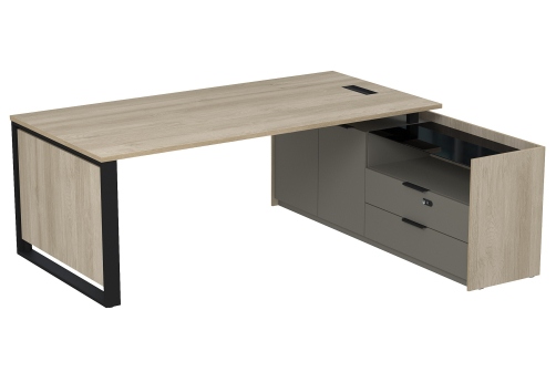 Стол с лючком на опорной угловой тумбе с ящиками (метабокс) и кодовым замком Венди, цвет светлый дуб + терра