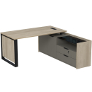 Стол с лючком на опорной угловой тумбе с ящиками (метабокс) и замком Венди, цвет светлый дуб + терра