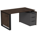 Стол с лючком на опорной угловой тумбе с ящиками (метабокс) и замком Венди, цвет брауни + графит