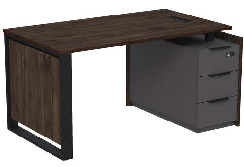 Стол на опорной двусоставной тумбе с ящиками и замком Венди, цвет брауни + графит